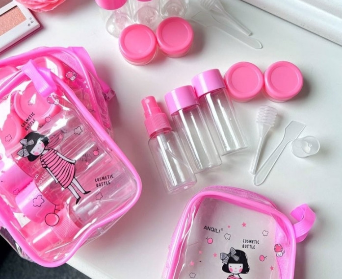 ست مسافرتی دختر دارای ۵ محفظه است که هنگام سفر مورد نیاز شماست. مواد آرایشی و بهداشتی خود از قبیل عطر، کرم پودرها و شسشتو دهنده پوست و مو را داخل این پک مسافرتی قرار داده و به هراه خود ببرید. با استفاده از این ست مسافرتی حجم کلی مواد آرایشی مصرفی کاهش مییابد و به راحتی با اشغال کمترین فضا داخل کیف شخصی شما جا میشود.